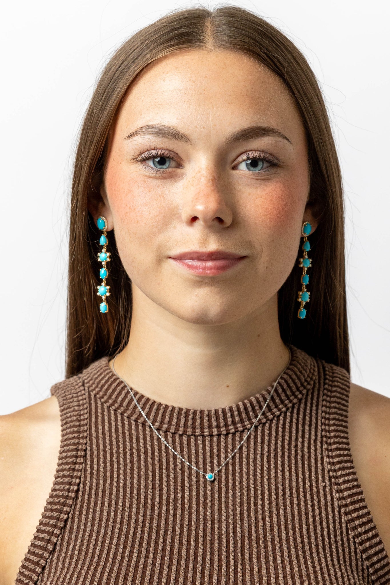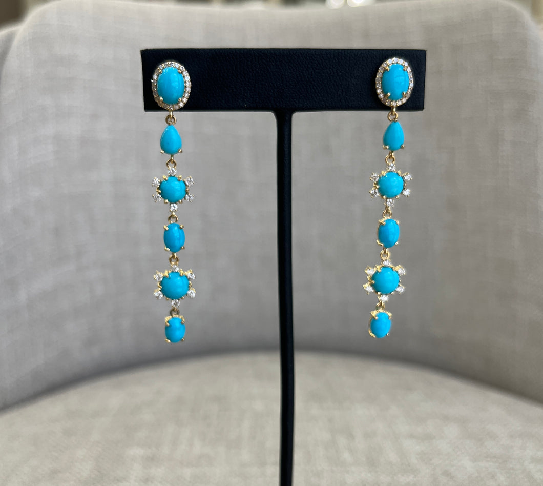 14KY gold earrings with .79ct natural diamonds and Sleeping Beauty turquoise