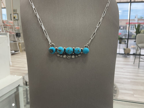 Necklaces are so versatile! One can be your main focal point of your outfit or stacking many together can set the mood of your entire outfit! Whether turquoise, navajo pearls, or a brand, necklaces draw attention to what is most important to you!