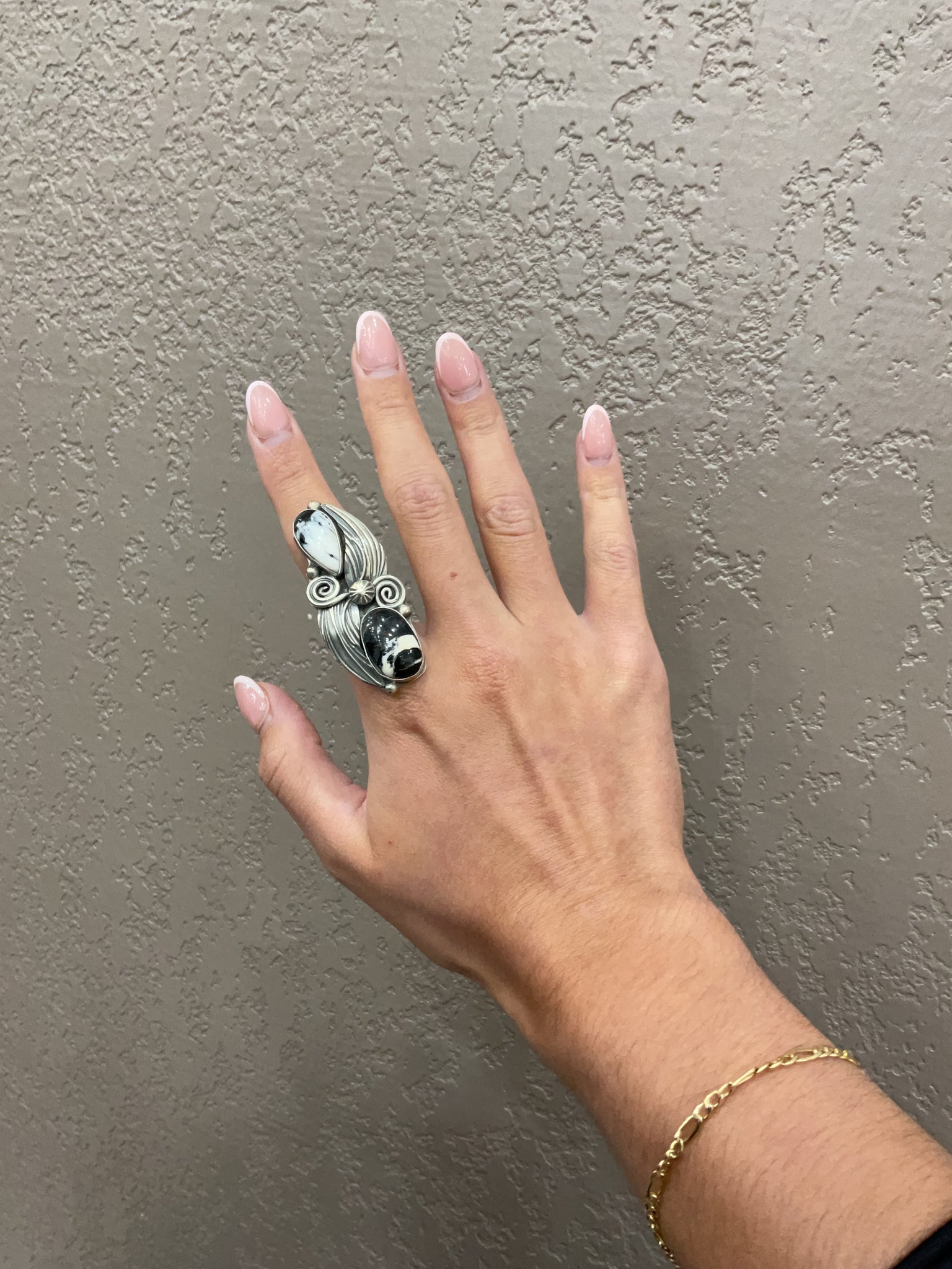 Handmade SS white Buffalo ring